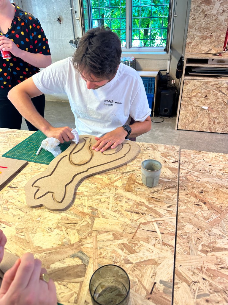 → Jouw ontwerp wordt vervolgens uitgefreesd (groeven gemaakt) in een houten paneel.